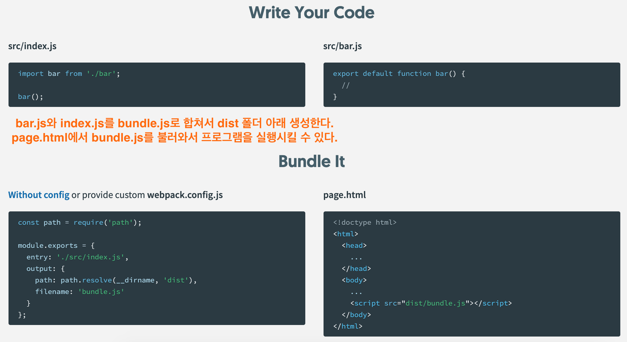 쉽게 말해서 여러 개의 자바스크립트 파일을 한 번에 합쳐서 하나의 자바스크립트로 만들어 주고, 바벨을 적용하거나 쓸데 없는 코드들도 없앨 수 있다.