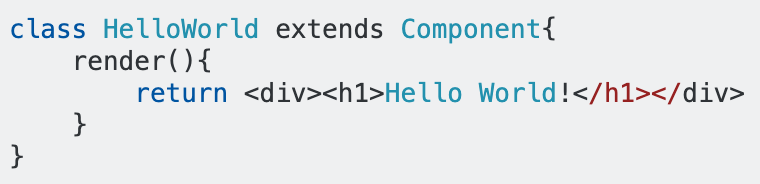 JSX 문법에서는, 뷰 레이어를 생성하기 위해 JavaScript 안에 <div><h1>Hello World!</h1></div> 같은 HTML 엘레먼트를 사용할 수 있다.