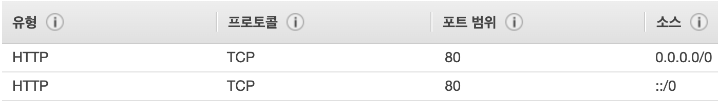 보안 그룹에 HTTP 80번 포트도 추가해놓자!